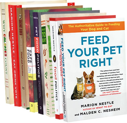 Her book, What to Eat, published by North Point Press/ Farrar, Straus & Giroux (2006, paperback 2007), was named as one of Amazon.Com’s top ten books of 2006 (Health, Mind, and Body) , and a “Must Read” by Eating Well magazine; it won the Better Life Award (Wellness) from the National Multiple Sclerosis Society, and the James Beard Foundation book award for best food reference in 2007. Pet Food Politics: The Chihuahua in the Coal Mine was published by University of California Press in 2008 and in paperback in 2010. Feed Your Pet Right, co-authored with Malden Nesheim also came out in 2010 (Free Press/Simon & Schuster, May 2010). Her most recent book, published in 2012, is also with Malden Nesheim: Why Calories Count: From Science to Politics, also with University of California Press.