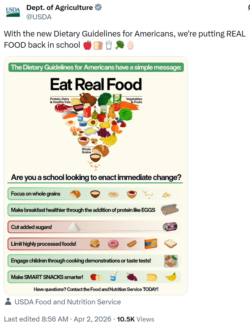 The new MAHA dietary guidelines could mean that changes are coming to school meals. Or so the USDA says.