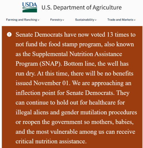 What began as a program for the neediest Americans, the Supplemental Nutrition Assistance Program (SNAP), commonly referred to as food stamps, has exploded to serve one in every eight Americans. The food stamp rolls have not only skyrocketed due to eligibility loopholes and regulatory boondoggles—each allowing for millions of work-capable adults with school age children to participate—but a program that has recently become a “leverage” point for Democrats in their self-inflicted government shutdown…So, the truth has revealed itself. Democrats’ support for programs like SNAP is now reduced to cynical control over people’s lives.